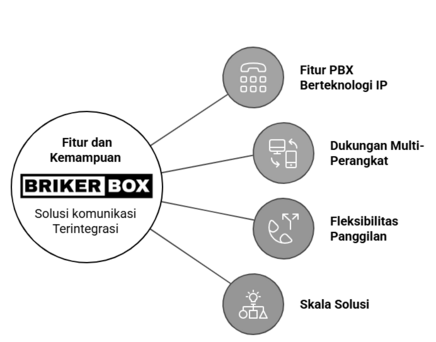 Brikerbox berfungsi layaknya PBX analog/konvensional menyediakan berbagai fitur menarik untuk menunjang bisnis dan melancarkan roda usaha organisasi.